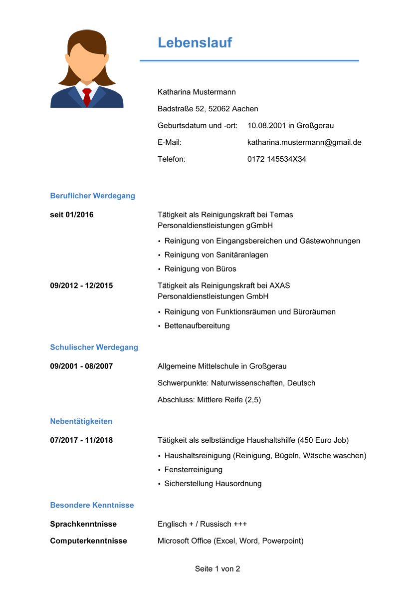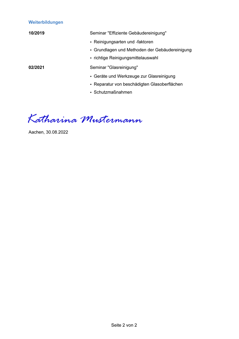 Muster Bewerbung Reinigungskraft