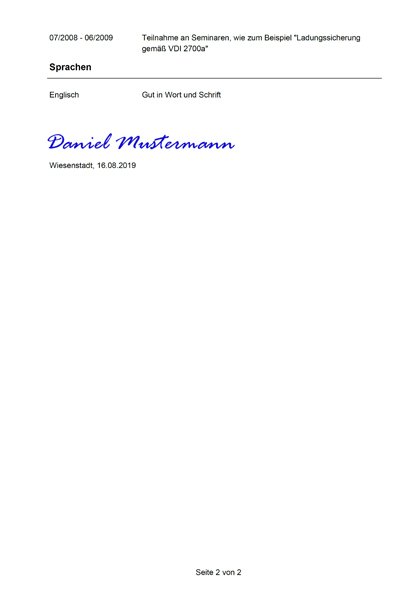 Neben diesen Aufgaben möchte ich zukünftig auch Tätigkeiten in der Verwaltung wahrnehmen. Daher freue ich mich schon jetzt darauf, bei Ihnen mit dem ERP-System SAP zu arbeiten und die Warenannahme, Wareneingangs- und Warenausgangskontrolle durchzuführen. Aus meiner täglichen Arbeit als Lager-Fachkraft können Sie von mir eigenverantwortliches Arbeiten und Teamfähigkeit erwarten.